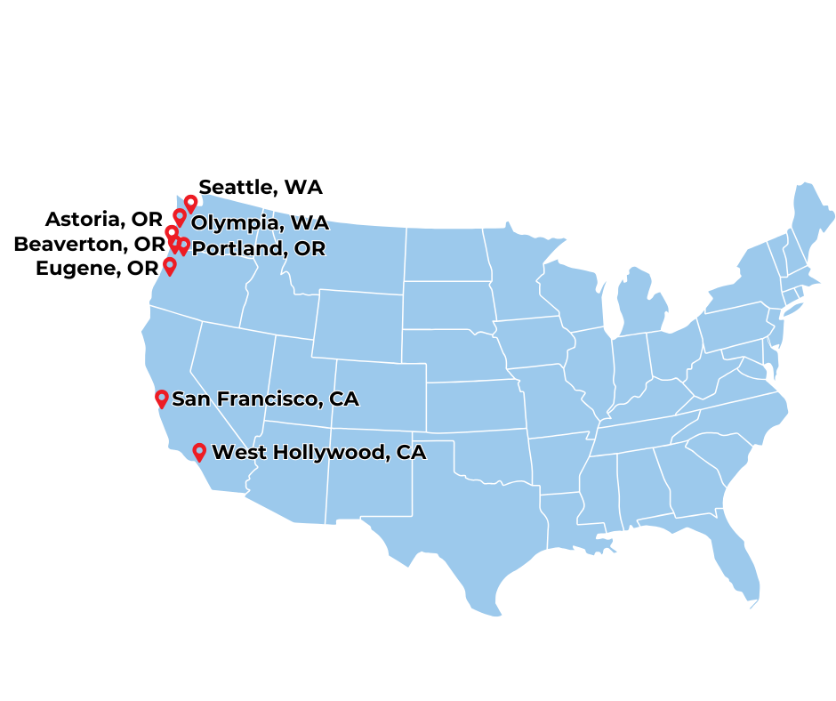 We're also cultivating campaigns in various stages of development in West Hollywood, CA; Olympia, WA; and Beaverton, Eugene, and Astoria, OR